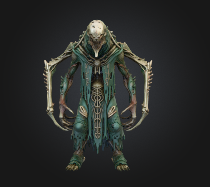 Perfect for dark fantasy worlds, necromancer dungeons, horror narratives, or otherworldly boss encounters, the Bonebound Archfiend is a highly atmospheric asset. The model’s detailed PBR textures bring out the sharp contrast between polished bone, decomposed flesh, and aged cloth, making it ideal for cinematic scenes and high-quality game projects.