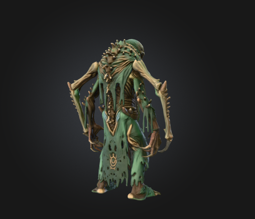 The Archfiend’s robe, adorned with cryptic runes and ritualistic patterns, hints at its role as a conduit for forbidden energy. The tattered textures and eerie green palette give the impression of a creature that has walked through centuries of occult devastation. Its posture, towering and unwavering, suggests sentience—an entity that speaks in whispers of ruin and commands legions of corrupted beings.